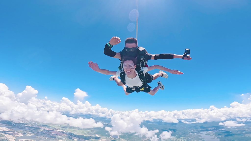 高空跃出:到达指定高度后,在教练带领下跃出机舱,感受每秒 50 米的自由落体快感。自由落体约 30 秒后,教练打开降落伞,从极速坠落转为平稳滑翔,尽情俯瞰下方美景。