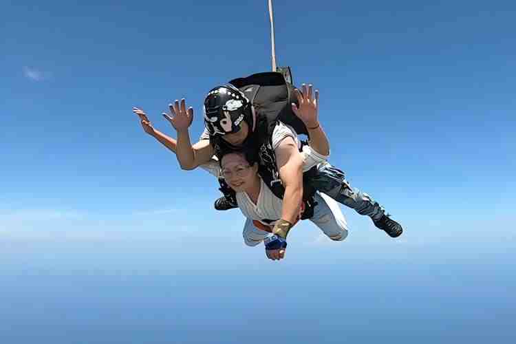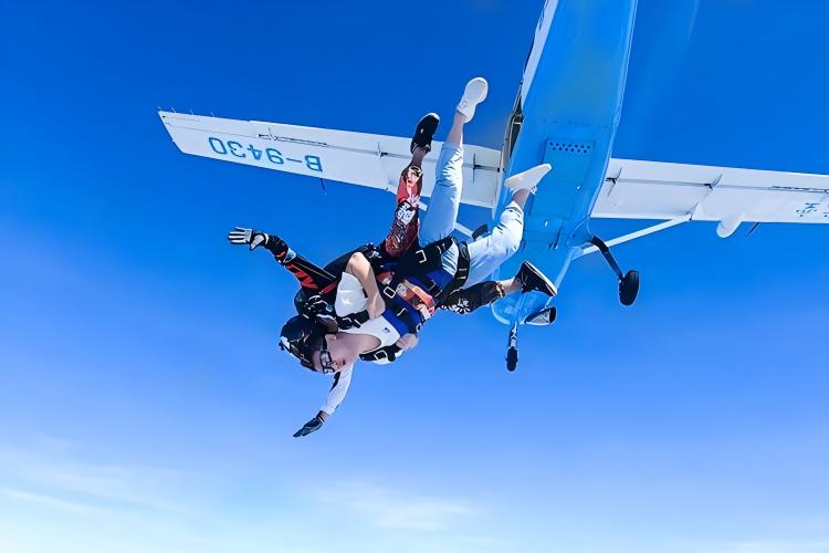 与教练一同登机后,20 分钟左右攀升至 4000 米高空。舱门打开时海风拂面,跟着教练倒数 “3、2、1” 纵身跃出,35-60 秒的自由落体中,感受时速 200 公里的强风冲击,风声呼啸间大地与海洋在视野中快速铺展,肾上腺素飙升。