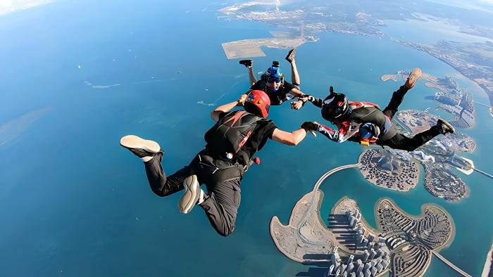 与教练一同登机后,20 分钟左右攀升至 4000 米高空。舱门打开时海风拂面,跟着教练倒数 “3、2、1” 纵身跃出,35-60 秒的自由落体中,以时速 200 公里俯冲而下,风声呼啸间大地与海洋快速铺展,肾上腺素飙升。