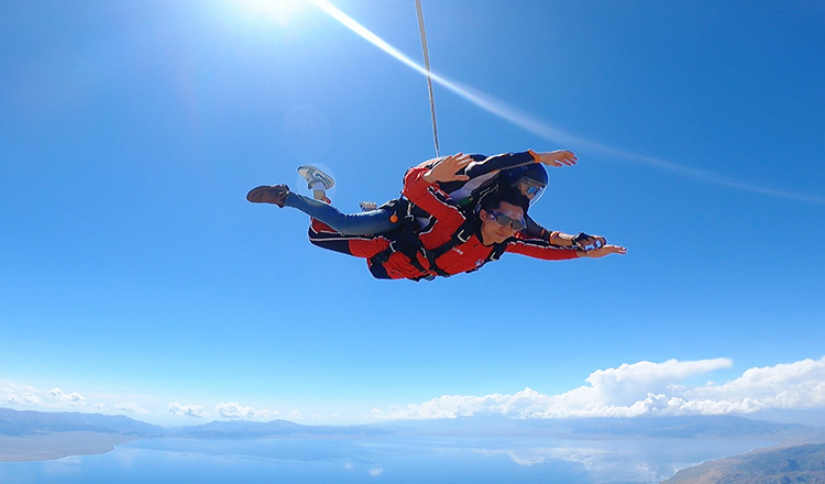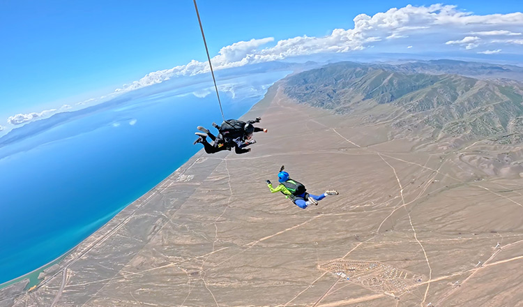 专业教练开展 40 分钟地面培训(含高原注意事项讲解),重点讲解出舱姿势、自由落体呼吸技巧和着陆缓冲动作。随后穿戴全套装备:防风保暖跳伞服、安全背带系统、防紫外线头盔和护目镜,戴眼镜者可领取适配防滑镜套,确保高空视野清晰。登机升空与勇敢一跃与教练一同登机后,25 分钟左右攀升至 4000 米高空。舱门打开时,带着雪山寒气的风扑面而来,跟着教练倒数 “3、2、1” 纵身跃出,40 秒左右的自由落体中,感受时速 200 公里的强风冲击,风声呼啸间,赛里木湖如一块巨大的蓝宝石在身下铺展,天山山脉的雪峰次第浮现,肾上腺素瞬间飙升。