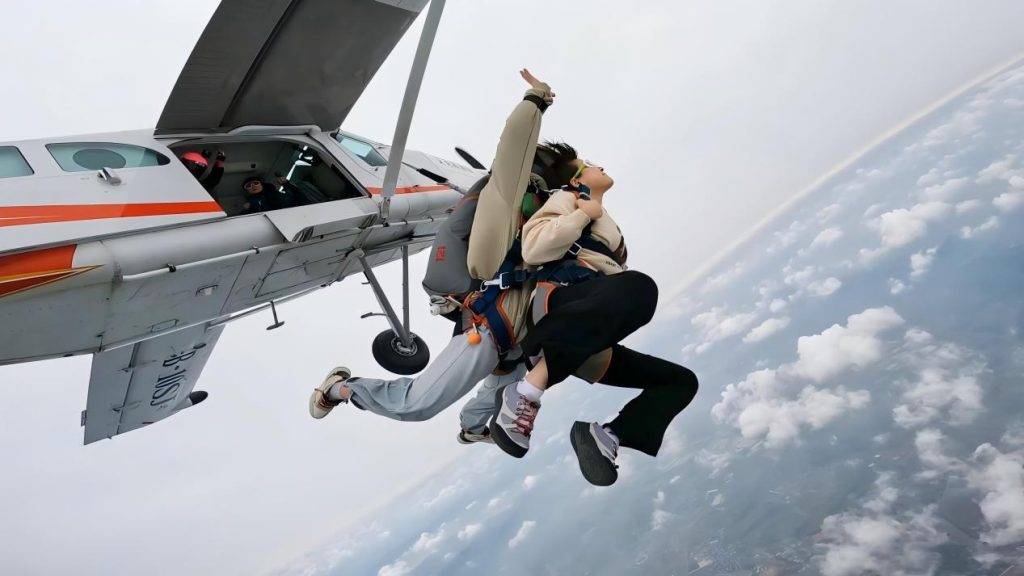 专业教练将开展 30-40 分钟地面培训,重点讲解出舱姿势、自由落体呼吸法和着陆缓冲技巧。随后穿戴全套装备:防风跳伞服、安全背带系统、头盔和防风镜,戴眼镜者可免费领取适配防滑镜套,确保高空视野清晰。